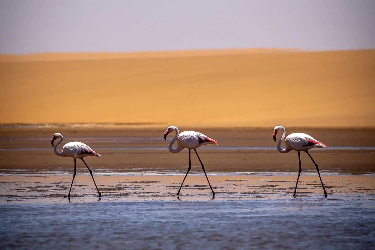 Sabah erken saatlerde Walvis Körfezi’ne varıyoruz. Namib Çölü’nün uçsuz bucaksız kumulları ile Atlantik Okyanusu’nun güçlü dalgalarının buluştuğu bu doğa harikası, sizi bambaşka bir dünyaya taşıyacak. Saat 10:00’da, Pelican Point’in korunaklı koyunda flamingoları, Cape karabataklarını ve dünyanın en büyük Cape kürklü fok kolonilerini gözlemleyebilirsiniz. Öğleye doğru göçmen kuşların dansını izleyerek büyüleyici anılar biriktireceksiniz. Seyahatiniz saat 09:30’daki inişle sona ererken, geriye ömür boyu hatırlanacak bir Afrika yolculuğu kalacak.
