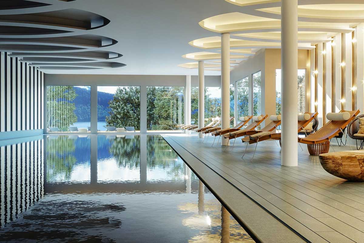 - Göl manzaralı hidroterapi havuzları, termal banyolar ve açık hava meditasyon alanlarıyla doğa ile bağ kurmayı teşvik ediyor.