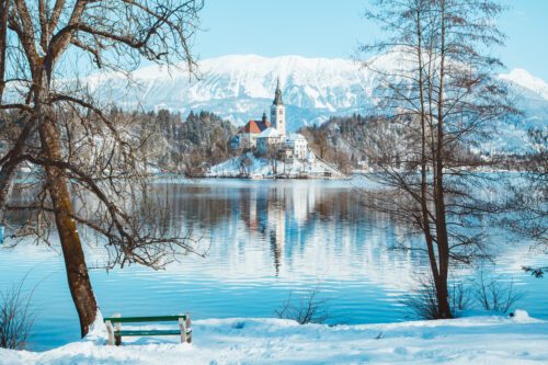 Kışın ortasında bile Bled Gölü tablo gibi görünüyor. Gökyüzü suya yansıyor, tepeler ışığın altında sessizce parlıyor. Kıyıdaki Noel Pazarı’nda sıcak şarap kokusu yayılıyor; tezgâhlarda el yapımı hediyelikler ışıkla parlıyor. 25 Aralık geldiğinde, gölün üzerinden yankılanan Batık Çan Efsanesi yeniden hayat buluyor. Bu efsanenin sesi, sessizliğin aslında ne kadar güçlü olduğunu hatırlatıyor.