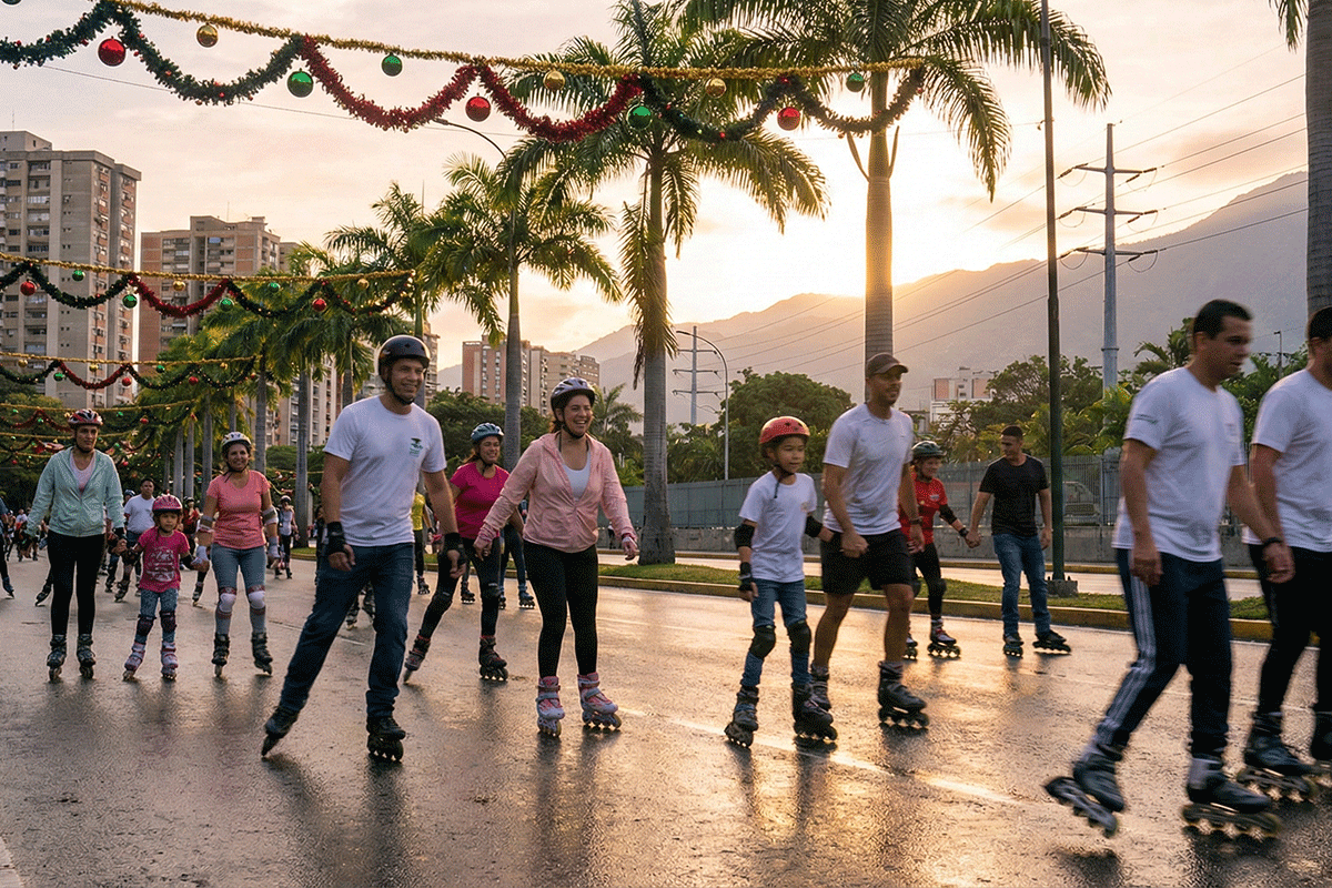 Caracas’ta 16–24 Aralık arasında sabah ayinine patenle gitmek geleneksel bir kutlama parçası olarak biliniyor. Sokaklar erken saatlerde canlı bir enerjiyle doluyor. Şehir yönetimi bu gelenek için sabah erken saatlerde yolları trafiğe kapatıyor. Noel ruhunun enerji, spor ve topluluk bilinciyle buluştuğu oldukça renkli bir gelenek.